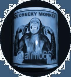 He's a *CHEEKY MONKEY* it has to be said, Doesn,t need the *APE* masks he puts over his head! If he tells you *WHATEVER*! you better agree, Or it's "I,ll kick your ass, Don,t you mess with me"!