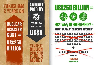 How many of us know the reality of what is happening in Japan and the effect that the Fukushima disaster is having, not just on Japan but the whole world. Media blackout as certain leading media broadcasting companies all make and profit from Nuclear power plants.The Evil lies and cover up of the Janpanese government is a disgrace. They refuse to provide screening for families and children in perfectures that have higher fallout readings than Fukushima. We need to help. Greenpeace is a good place for us to start.Please get involved. The truth about nuclear power and disaster is the end of mankind. How many of us know, that the effects of Chernobly, shut down farming in the east coast of Britain, beacuse cesium 137 along with other pollutants were found in our soil. Chernobly was shut down within so many days... years on and Fukushima is still not contained and is still spilling out disastrous amounts of pollution every single second of every day. Cancer we know is on the rise and we are all looking for cures. Prevention is always better than a cure. SAY NO TO NUCLEAR POWER!!!